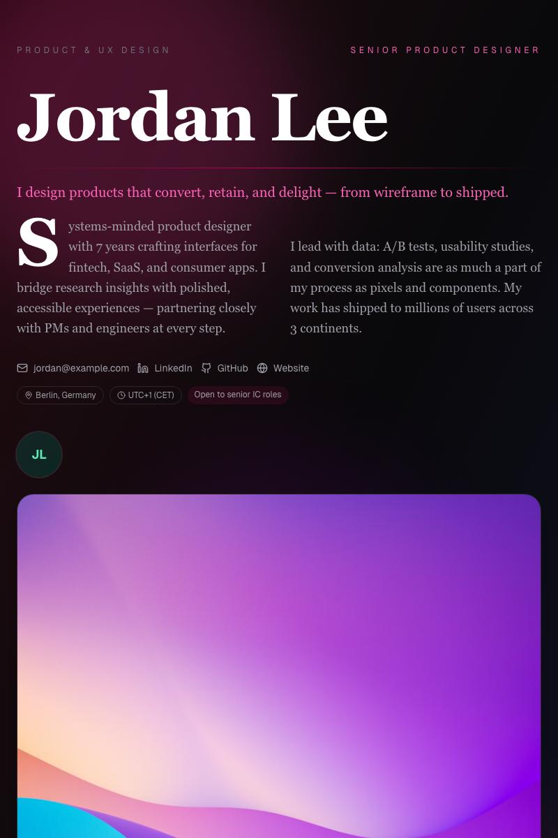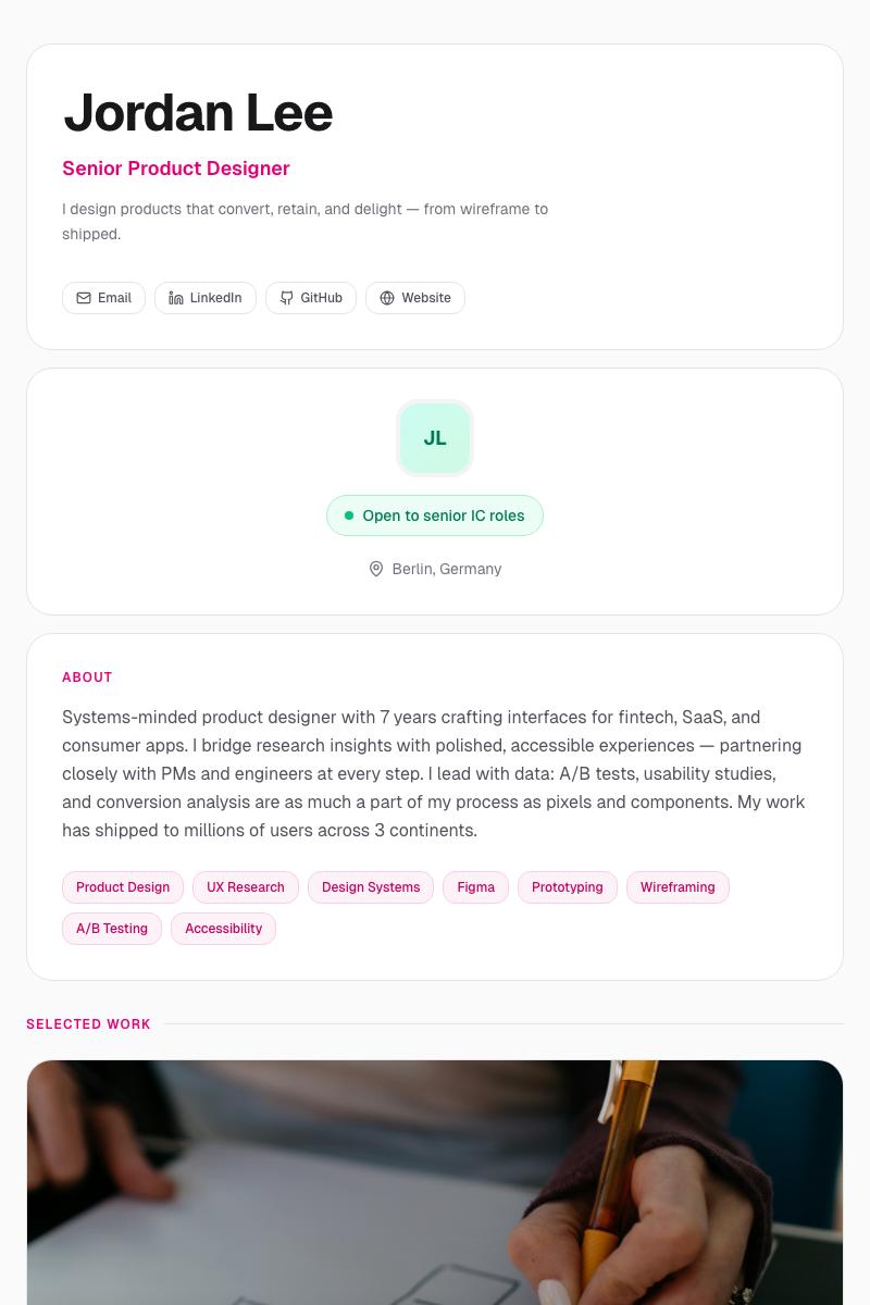 “Finally, something that lets my work do the talking instead of a boring PDF. I landed two interviews the week I published.”